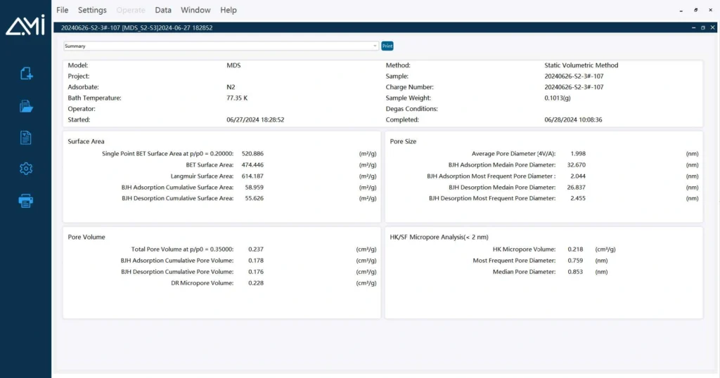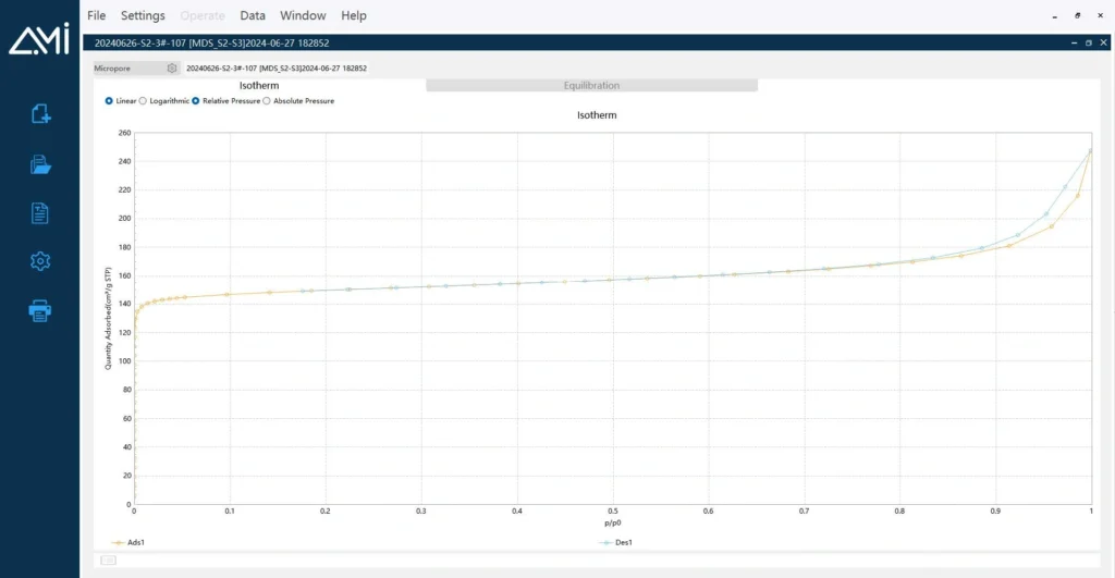 Comprehensive Data Modeling – Supports BET, Langmuir, BJH, t-Plot, HK, DFT, NLDFT, and other models for accurate surface area and pore size analysis of micro- and mesoporous materials.