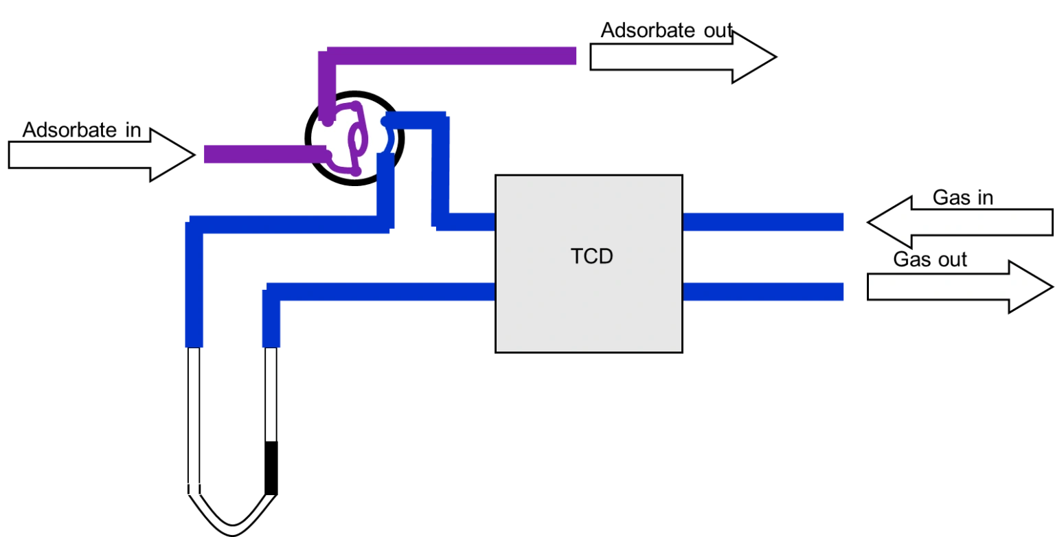 The experiment is performed under isothermal conditions, typically at ambient temperature and atmospheric pressure. A calibrated sample loop injects fixed volumes of reactive gas into a flowing carrier gas stream. As the gas mixture passes over the catalyst bed, the reactive species adsorb onto available metal sites—often through associative adsorption—while unadsorbed gas continues downstream to a detector, such as a thermal conductivity detector (TCD).