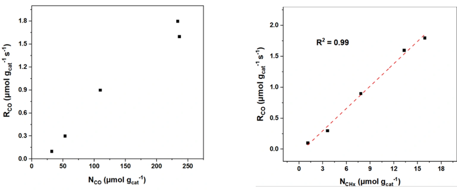 The conversion of synthesis gas (CO + H₂) into clean fuels and value-added chemicals is a key pathway for the efficient utilization of coal. However, the complexity of the product distribution and low selectivity of the reaction pose challenges to its industrial application. In recent years, cobalt-based catalysts have gained attention for producing high-quality diesel fuels, owing to their relatively slow deactivation and favorable carbon chain growth characteristics. While catalyst additives are known to significantly influence performance, their effects on reaction kinetics remain underexplored. To address this, Professor Yang Jia’s team at the Norwegian University of Science and Technology, in collaboration with Professor Xiaoli Yang’s group at Qingdao University, modified Co-based catalysts with Rh, Ir, Sb, and Ga to evaluate their effects on Fischer–Tropsch synthesis [4]. SSITKA was used to investigate the catalysts’ intrinsic activity and surface adsorption behavior, providing deeper insight into the role of these additives in reaction kinetics.