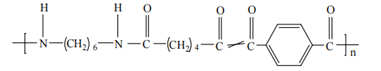 Semi-aromatic polyamides, such as poly(hexamethylene terephthalamide) (PA6T), are synthesized by reacting aromatic and aliphatic monomers. The chemical structure of PA6T, derived from terephthalic acid (PTA) and hexamethylenediamine (HMDA), is shown in Figure 4.