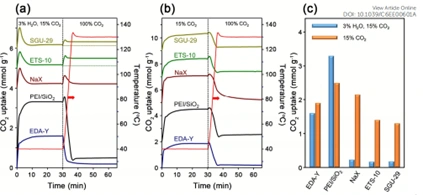 Post-combustion CO₂ capture from flue gas—typically containing nitrogen, CO₂, and water vapor—is another key application where adsorbent performance must be tested under realistic humidity. While materials like NaX and EFS-10 degrade under moist conditions, functionalized sorbents such as EDA-Y and PEI/SiO₂ maintain strong performance due to the presence of amine groups that preferentially bind CO₂.